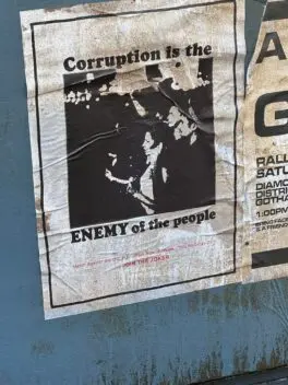 Um dos cartazes convoca cidadãos para um protesto público, com local e horário definidos, e encerra com um convite explícito para “se juntar ao Coringa”. Isso sugere organização, influência e atuação ativa na cidade.